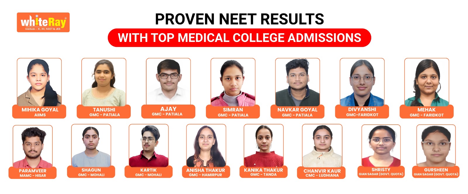 WhiteRay has a consistent track record of producing successful NEET candidates. We are proud of our students’ achievements, and our results speak for themselves. You can find testimonials and success stories on our website and social media channels. We are committed to providing the best possible education and support to help you achieve your medical dreams.